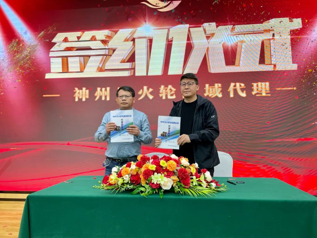 神州風火輪為全國意向代理商提供了一次財富機遇,同時也進一步布局全國市場。遼寧神州風火輪輪胎科技有限公司戰(zhàn)略顧問崔邵焜先生代表公司與意向代理商進行簽約儀式,本次招商會共有10位高瞻遠矚的意向代理商完成簽約,成功鎖定11城,再次認證了神州風火輪的綜合實力和品牌影響力,這也是神州風火輪未來發(fā)展的動力。獨行快,眾行遠。神州風火輪將與代理商在合作的道路上并肩前行,追求進步,為代理商的發(fā)展壯大持續(xù)不斷地注入能量。