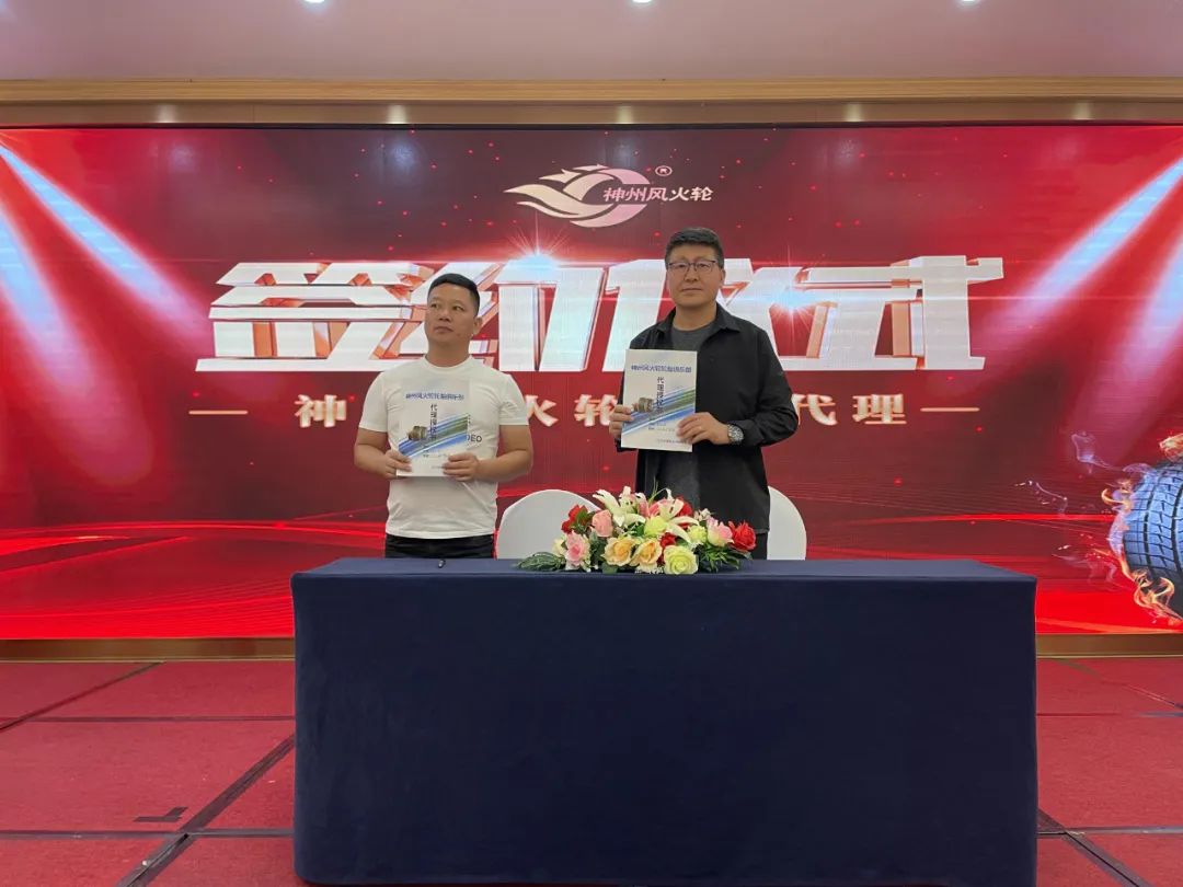 遼寧神州風(fēng)火輪輪胎科技有限公司戰(zhàn)略顧問崔邵焜先生代表公司與意向代理商進行簽約儀式,本次招商會共有4位高瞻遠矚的意向代理商完成簽約,成功鎖定4城。獨行快,眾行遠。神州風(fēng)火輪將與代理商在合作的道路上并肩前行,追求進步,為代理商的發(fā)展壯大持續(xù)不斷地注入能量。