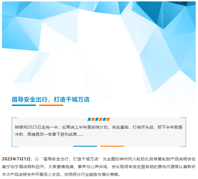 倡導(dǎo)安全出行,打造千城萬店”神州風(fēng)火輪2023年南寧站產(chǎn)品說明會在所有來賓的掌聲中圓滿落幕。未來,隨著代理商隊伍的不斷壯大,神州風(fēng)火輪還將繼續(xù)增強賦能力度,提升營銷效率,優(yōu)化代理體驗,實現(xiàn)深度合作。輪胎行業(yè)已然是風(fēng)口,請把握機遇,加入神州風(fēng)火輪大家庭,一起共創(chuàng)財富、共創(chuàng)未來!