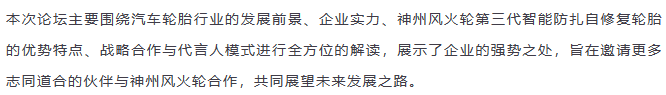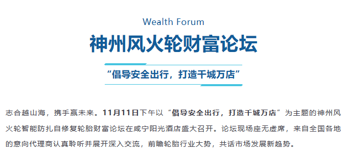 【盤錦站】“倡導(dǎo)安全出行,打造千城萬(wàn)店”神州風(fēng)火輪智能防扎自修復(fù)輪胎財(cái)富論壇