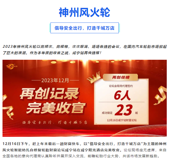 【咸寧站】“倡導(dǎo)安全出行,打造千城萬(wàn)店”神州風(fēng)火輪智能防扎自修復(fù)輪胎財(cái)富論壇