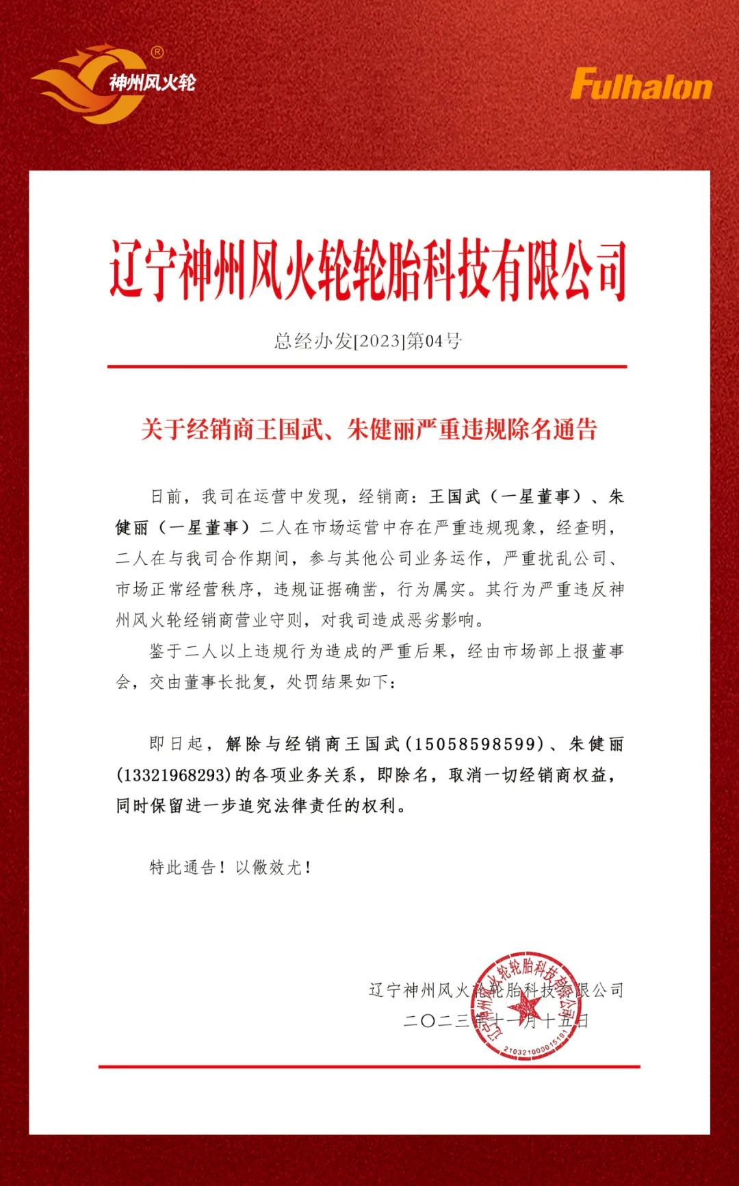 關(guān)于神州風(fēng)火輪經(jīng)銷商嚴(yán)重違規(guī)違紀(jì)的處理通告!